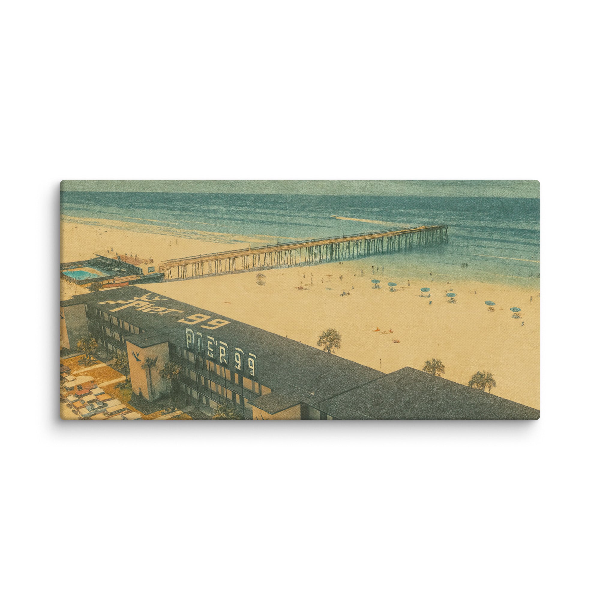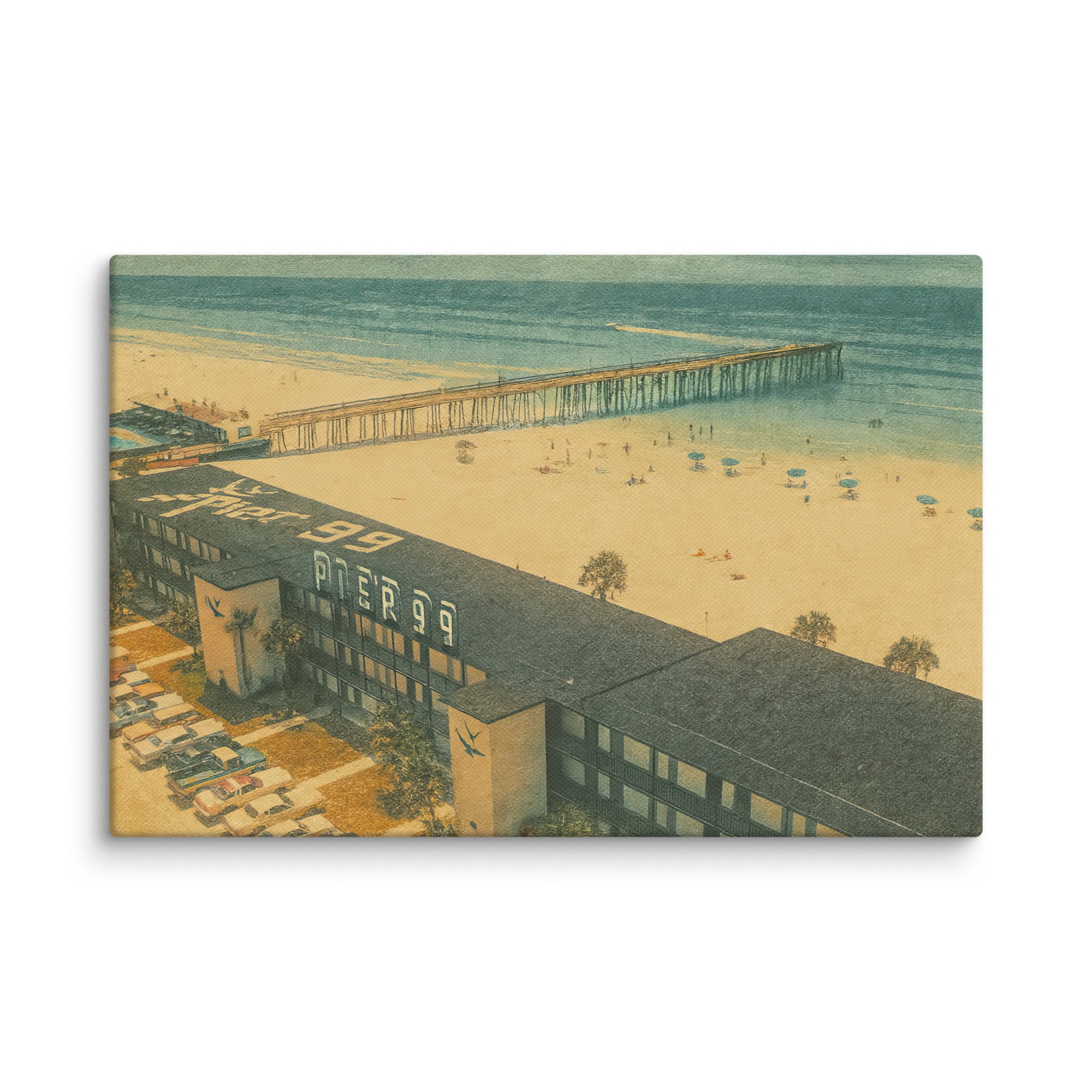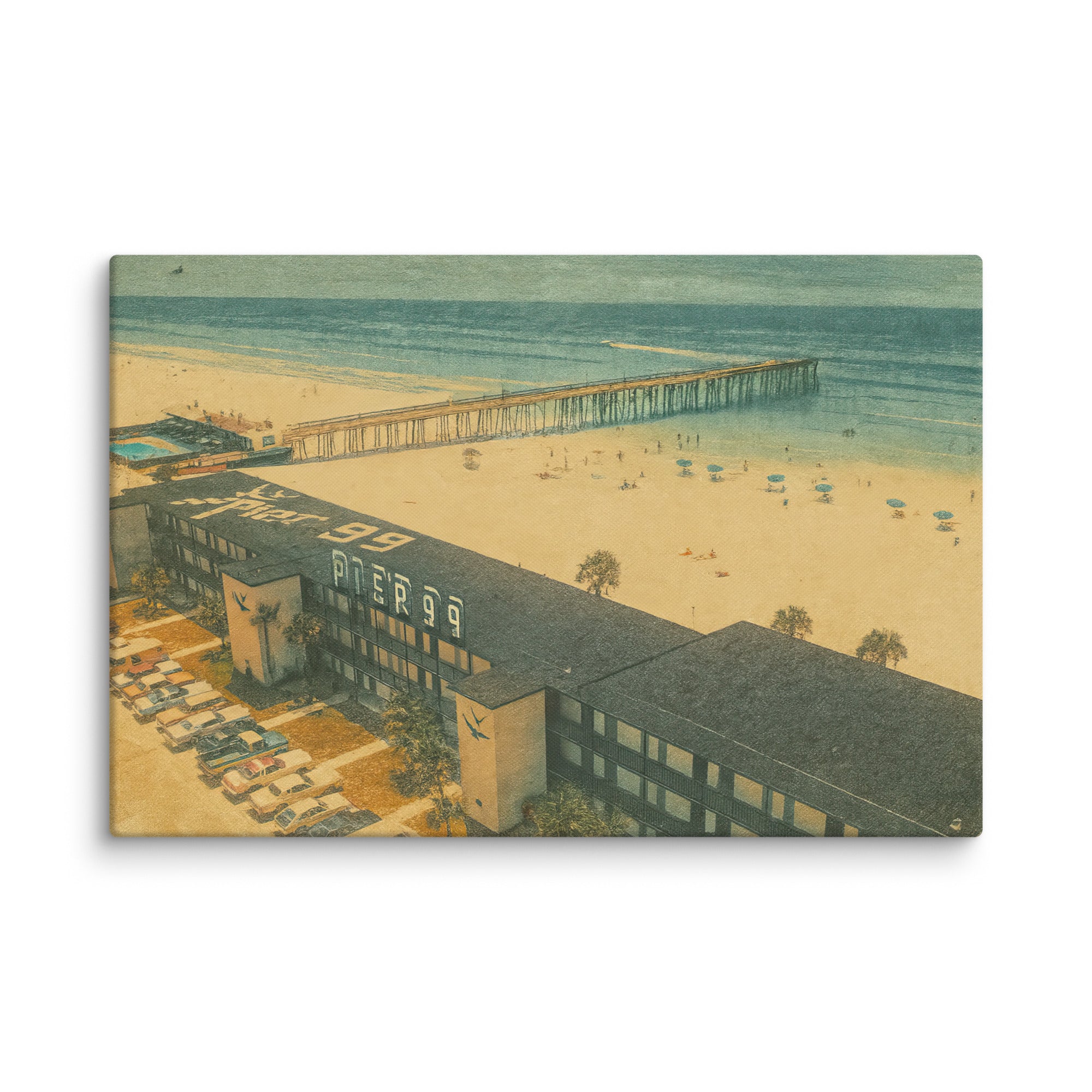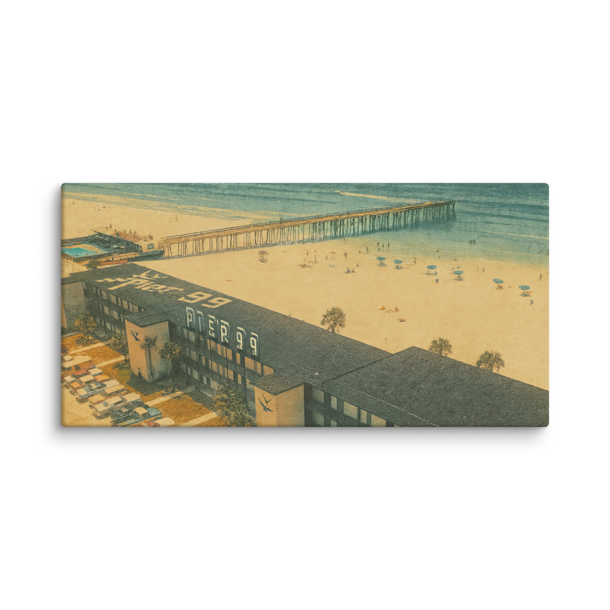 Bring a piece of Panama City Beach history into your home with this vintage Pier 99 canvas. Long before Pineapple Willy’s became a beachfront icon, the Pier 99 lounge and hotel stood as a beloved gathering spot on the sand. With vivid, fade-resistant colors printed on hand-stretched canvas, this artwork is more than décor - it’s a nostalgic window to the past that helped shape the beach we love today.