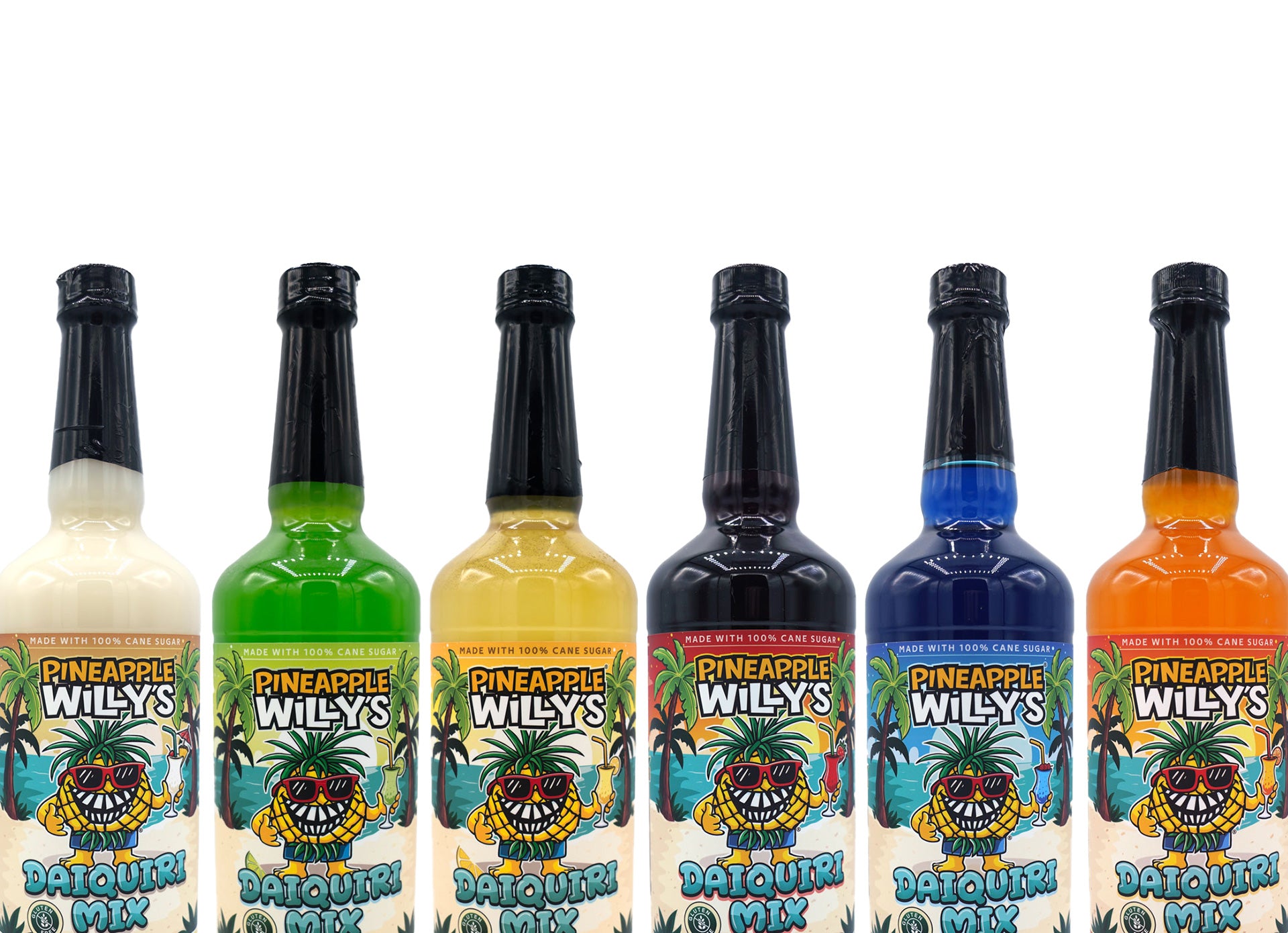 Bring the pier party home with our ultimate daiquiri mix bundle! This set includes a 1 litre bottle of all 6 signature Pineapple Willy’s flavors: