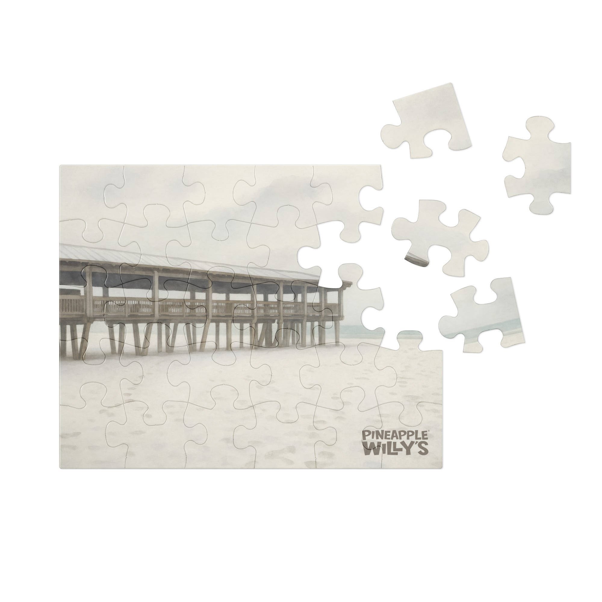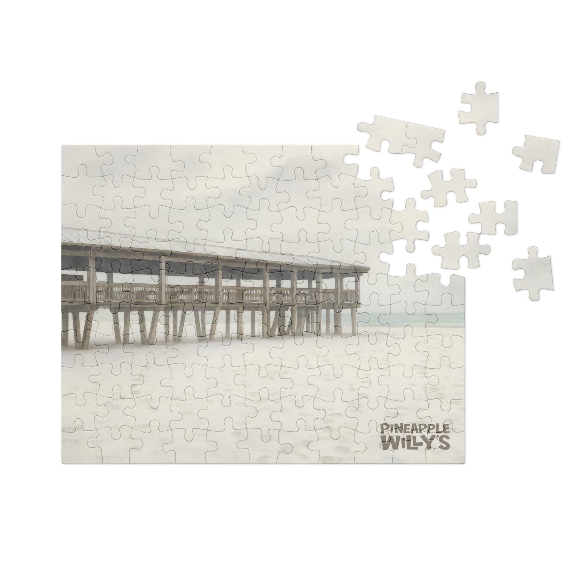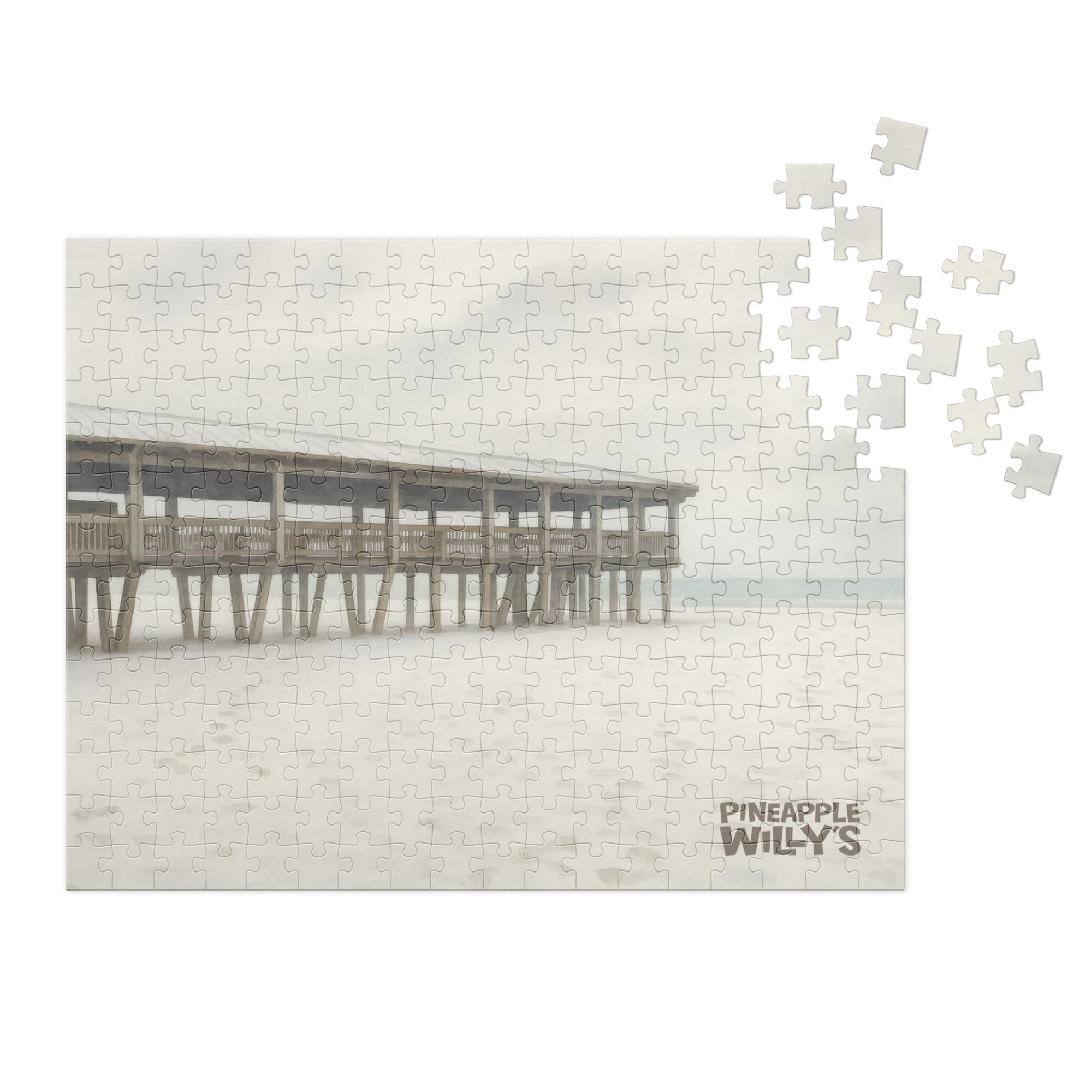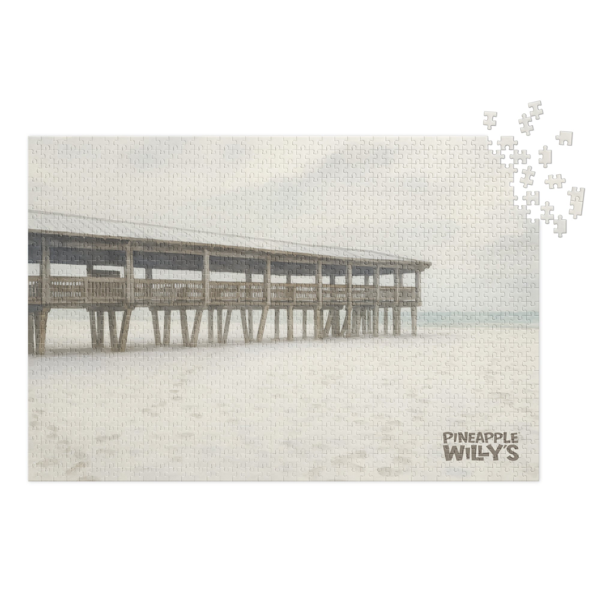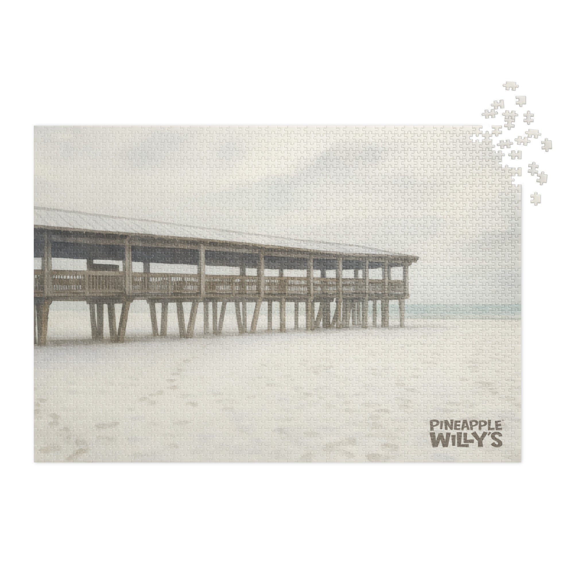 Celebrate the magic of Winter 2025 when snow touched the sands of Panama City Beach. This watercolor puzzle captures Willy’s Pier in a once-in-a-lifetime snowy scene, turning puzzle night into something truly special. Packed in a glossy metal tin featuring the finished artwork on the lid, it’s perfect for gifting, collecting, or framing once complete.