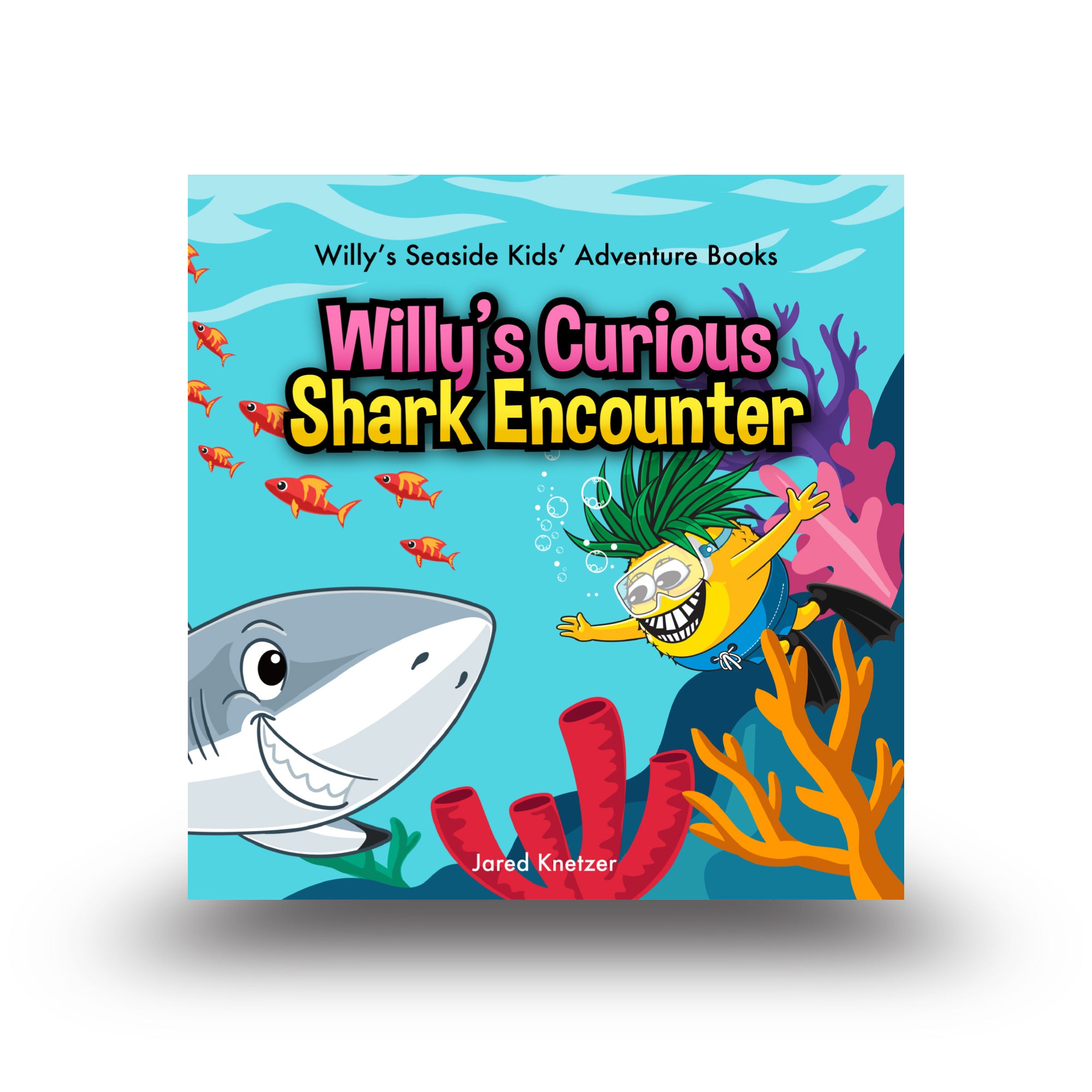 In Willy’s Curious Shark Encounter, Willy the Pineapple heads out for a relaxing day on the water… until a mysterious fin appears! But when he meets Shelby the Shark, he discovers there’s nothing to fear. Together, they explore the Gulf of Mexico, meet gentle nurse sharks and salad-eating bonnetheads, and learn how sharks keep the ocean clean and balanced.